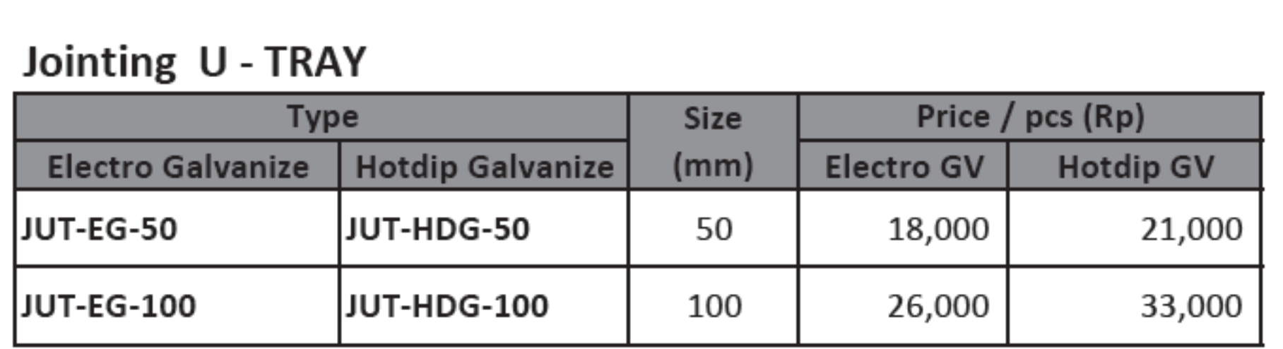 Jointing U – TRAY